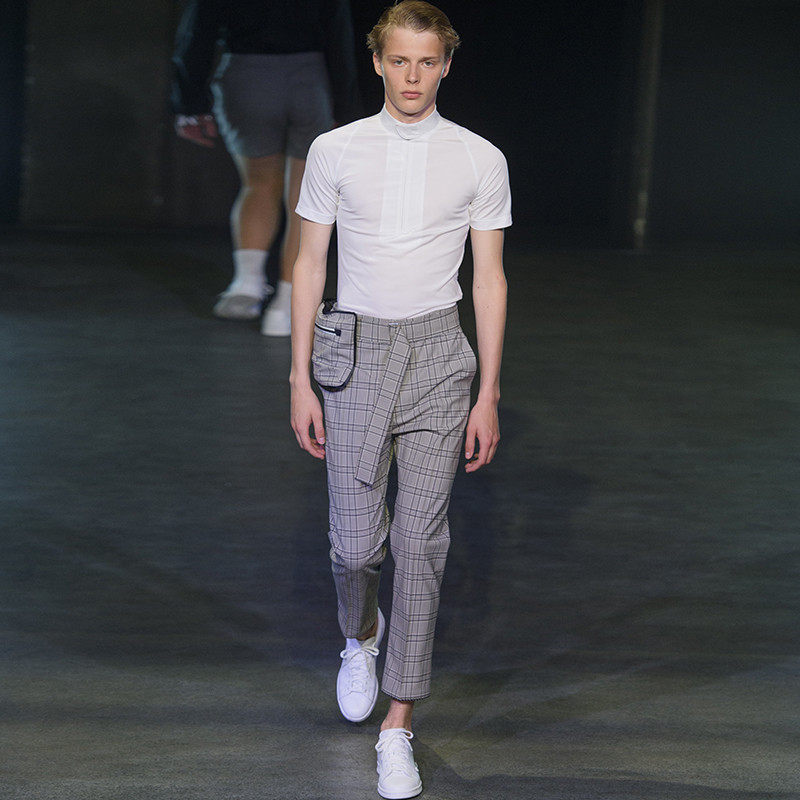 Man short sleeve T-shirt 2022 Summer American pure white pearl cotton personality tight collar polo shirt body blouse