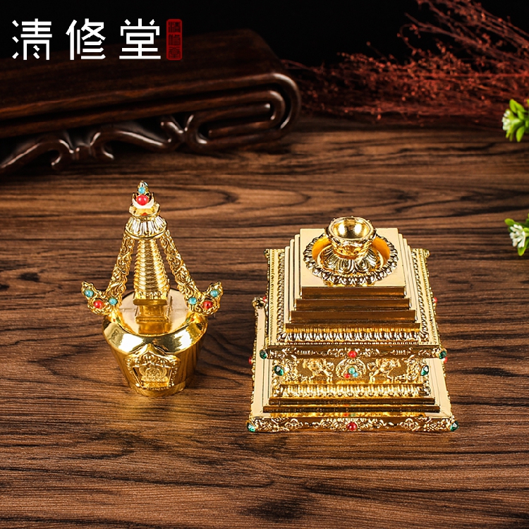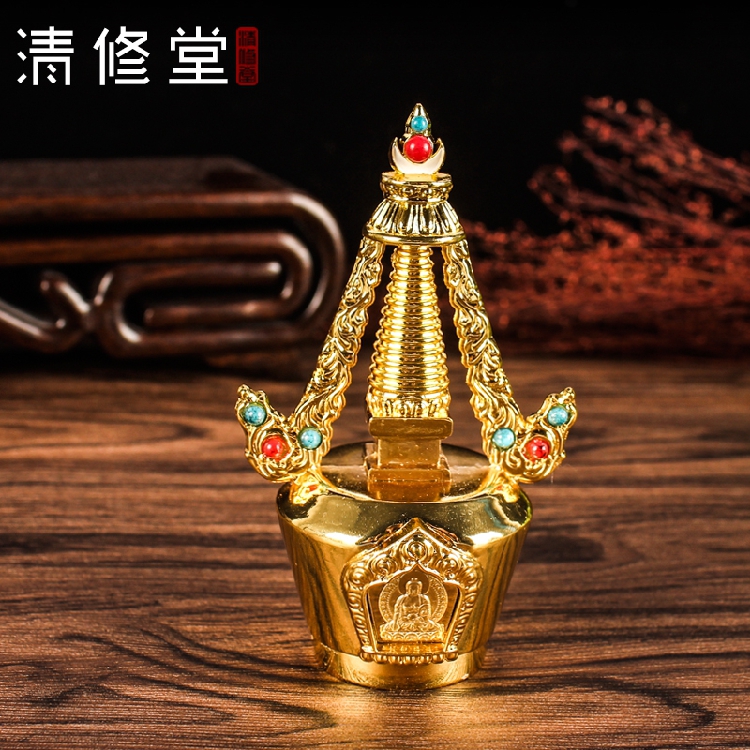 Copper alloy gilded Rulai Eight Pagoda stupa ornament Tibetan Buddhist supplies Stupa Relic Buddha statue Bodhi Pagoda trumpet
