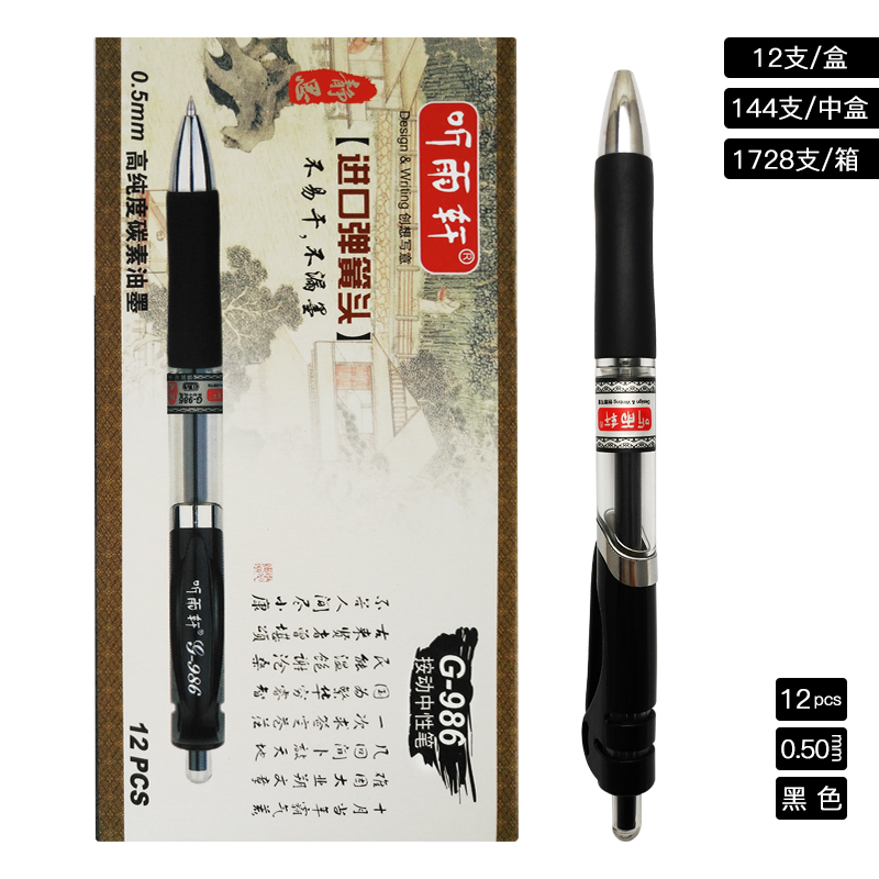 Listen Yuxuan G-986 gel pen signature pen black gel pen 0 5MM water-based pen bullet student nurse doctor special pen large capacity automatic pressing spring soft grip pen Guangzhou delivery