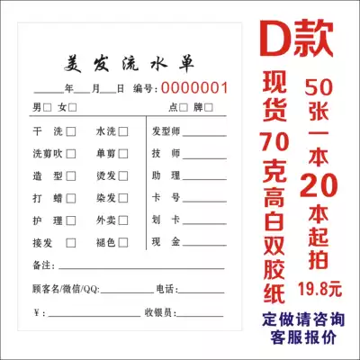 United single custom beauty salon settlement bill cashier flow single consumption Bill sales bill reimbursement receipt receipt
