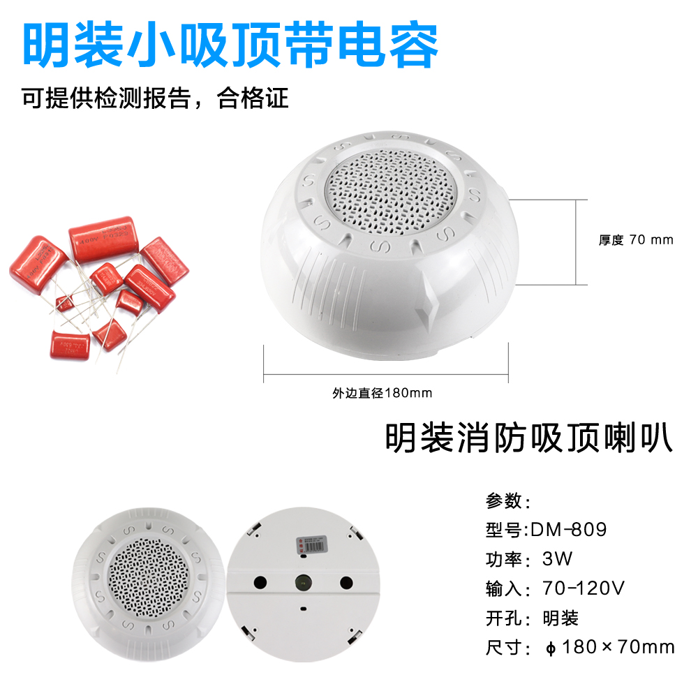 3W Ming loaded fire suction top loudspeaker speaker free of bore ceiling Ming-fit suction top loudspeaker with capacitive fire broadcast