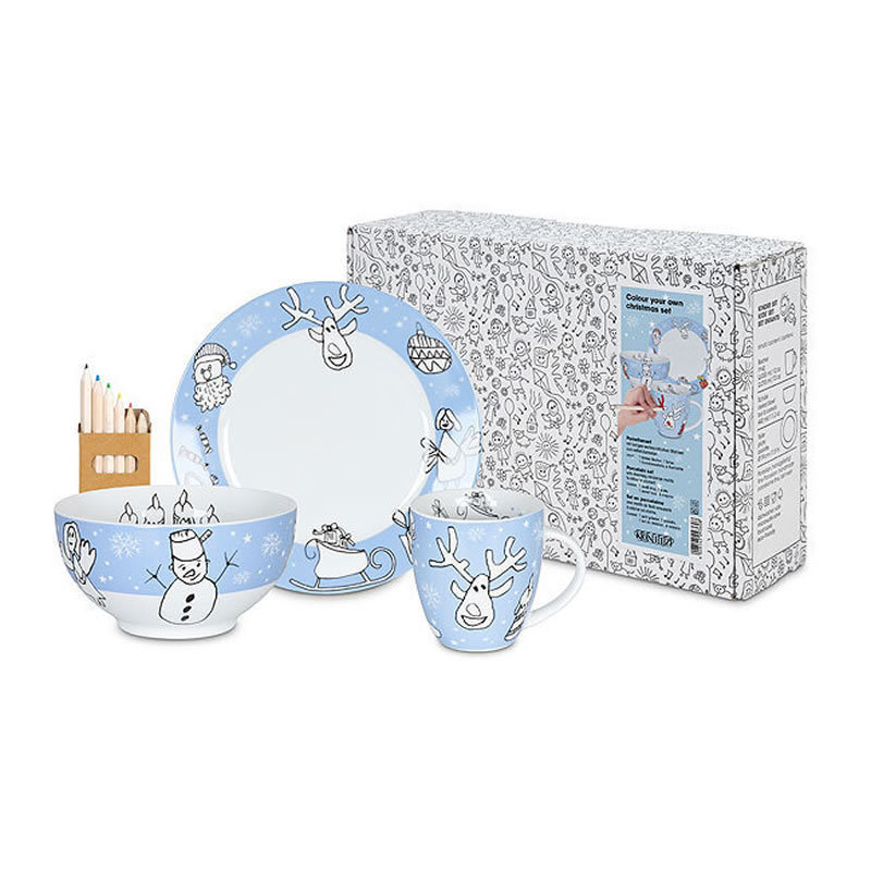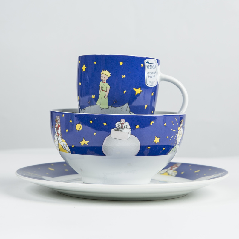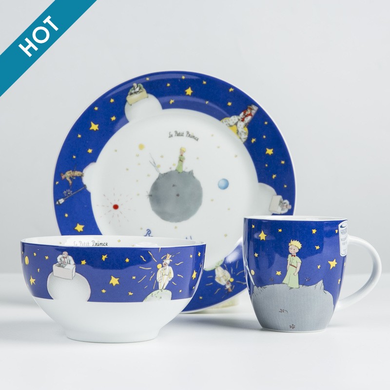 Germany imported porcelain tableware set High-grade water ceramic Good night little Prince tableware gift 3 sets royal blue