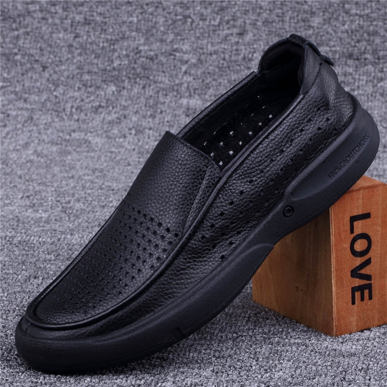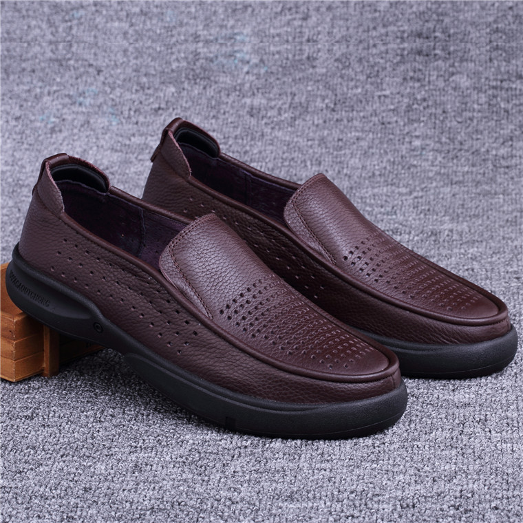 Summer Foreign Trade Men's Shoes Genuine Leather Shoes Dongle Shoes Sandals Business Casual Hollowed-out Leather Shoes Breathable Head Layer Bull Leather Shoes Man