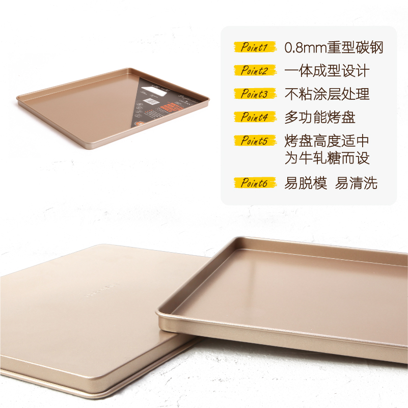Chefmade learning kitchen golden non-stick 12 inch nougat plate baking mold square baking pan