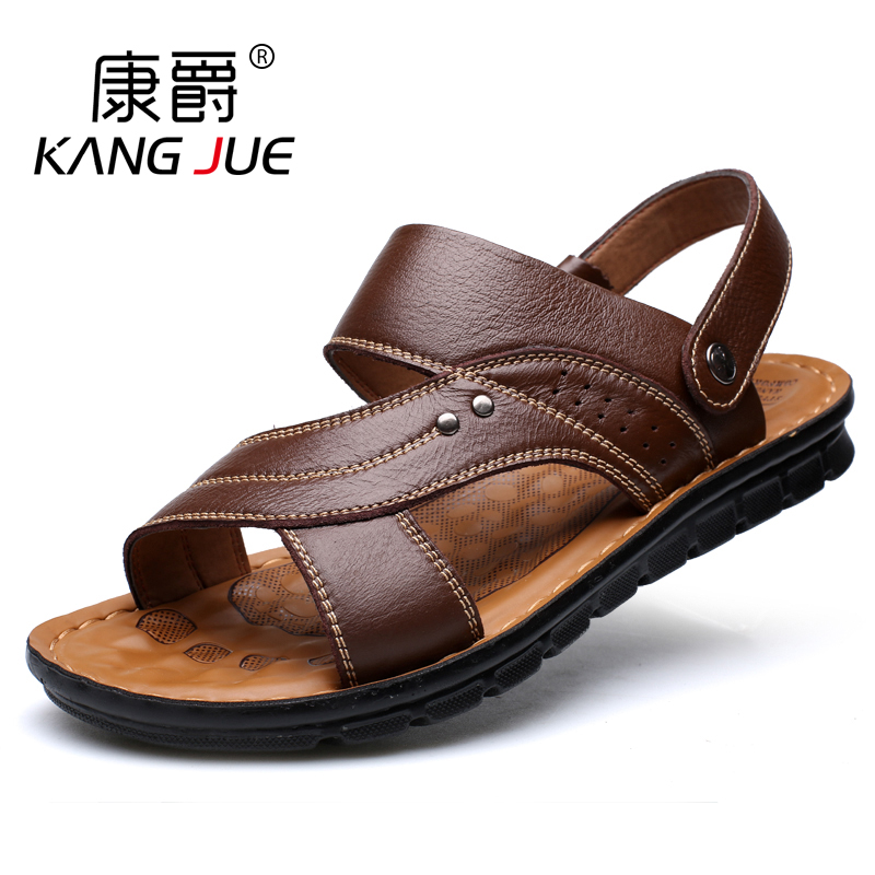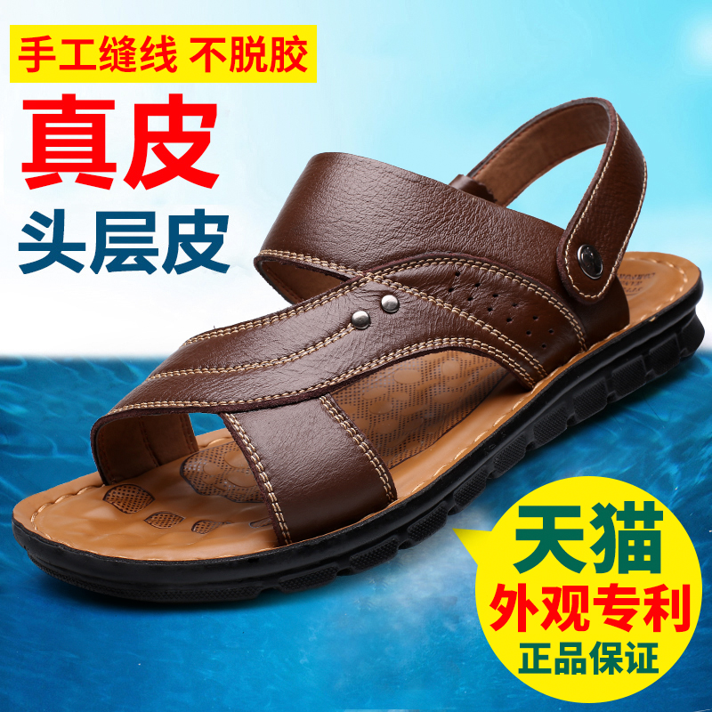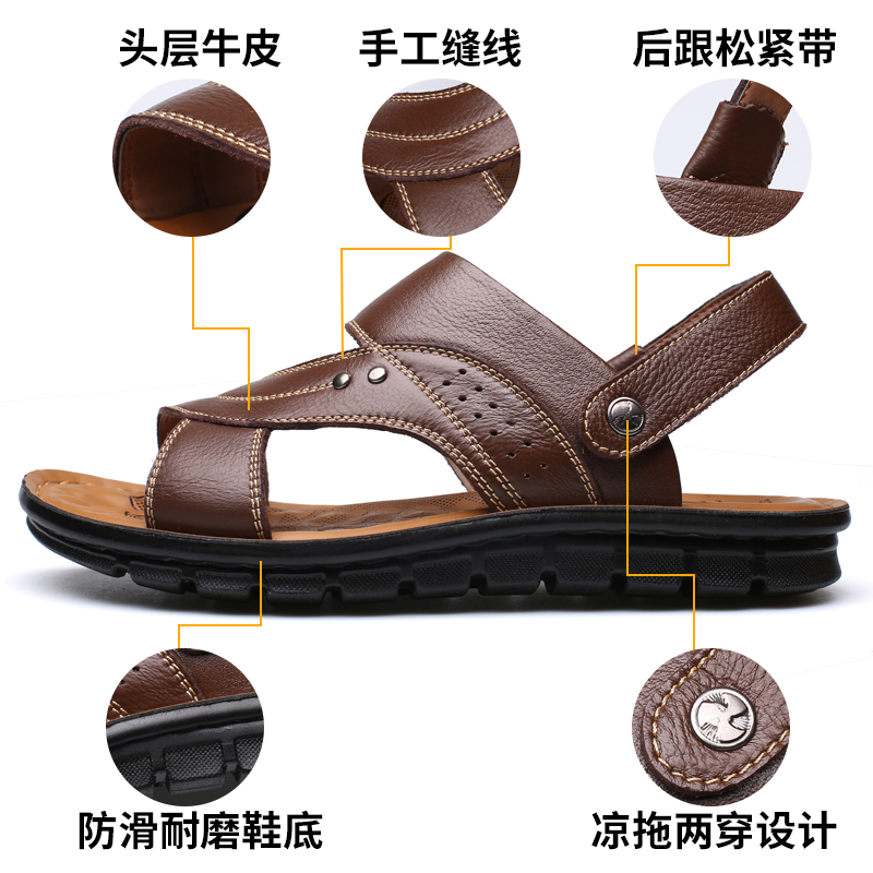2022 New Summer Leather Beach Shoes Sandals Slippers Soft Sole Trendy Anti-slip Sandals Male Middle-aged and Elderly Daddy Shoes