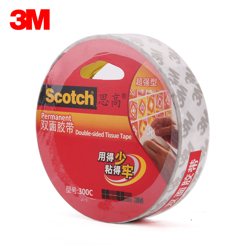 3M Scotch double-sided tissue paper tape white double-sided tape strong type 300C industrial high-viscosity office tape 18 24mm*9 5m