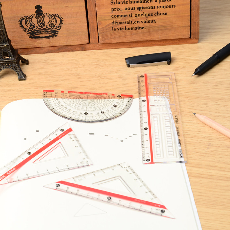 Morning light ARL96181 Confucius Temple blessing set ruler 4-piece set Ruler protractor triangle board Student examination stationery