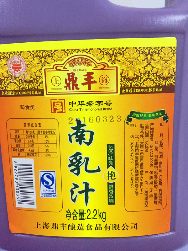 Shanghai Dingfeng South Milk Curd Curd Curd Cooking Hot Pot Seasonings Mate 2 2 1000gr