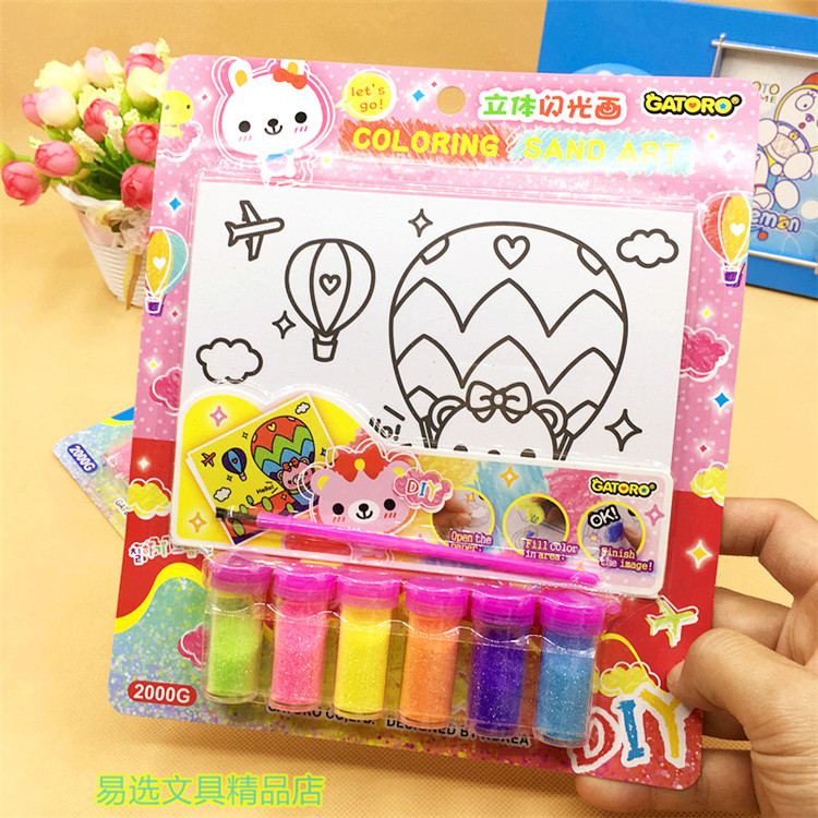 Korea Creative DIY Children Fill Color Painting 6 Color Gold Powder Painting Handmade Puzzle Toy Graffiti Stereo Flash Painting