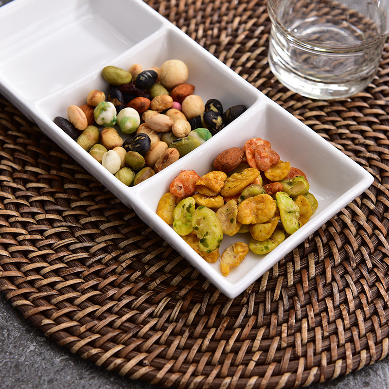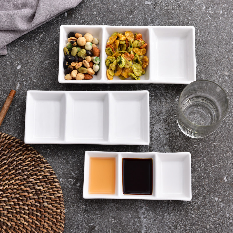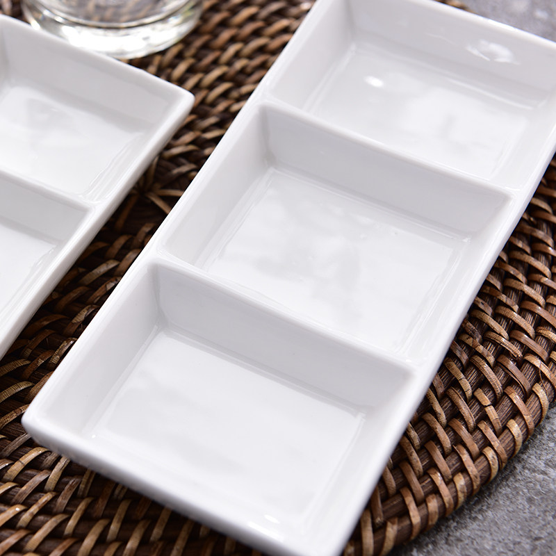 Ceramic three-grid plate Cold dish Sauce dish Small dish Snack dish Ceramic hotel hot pot special three-in-a-row plate