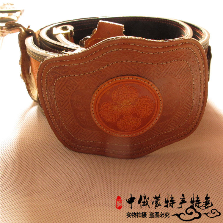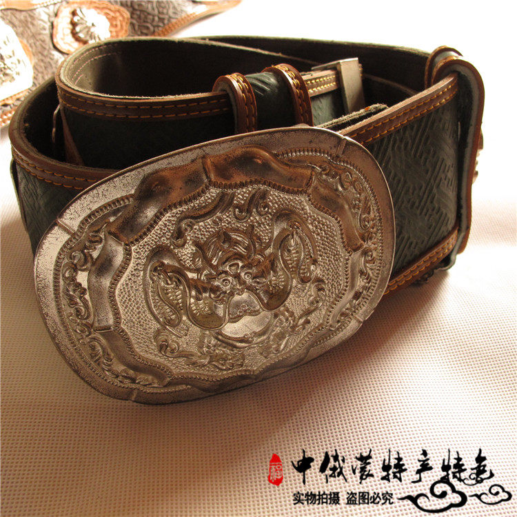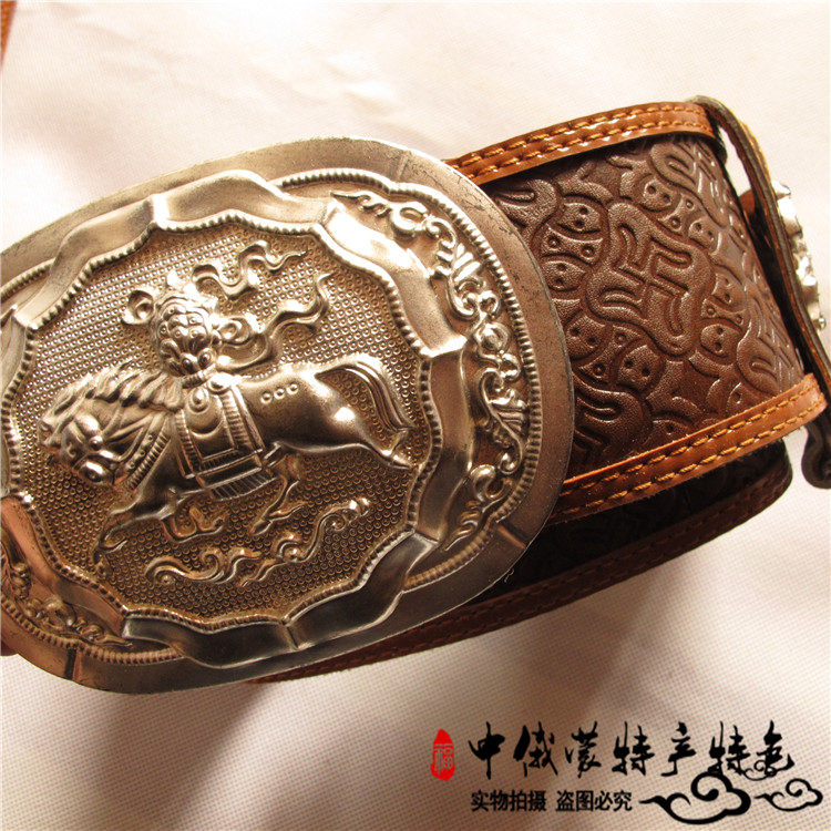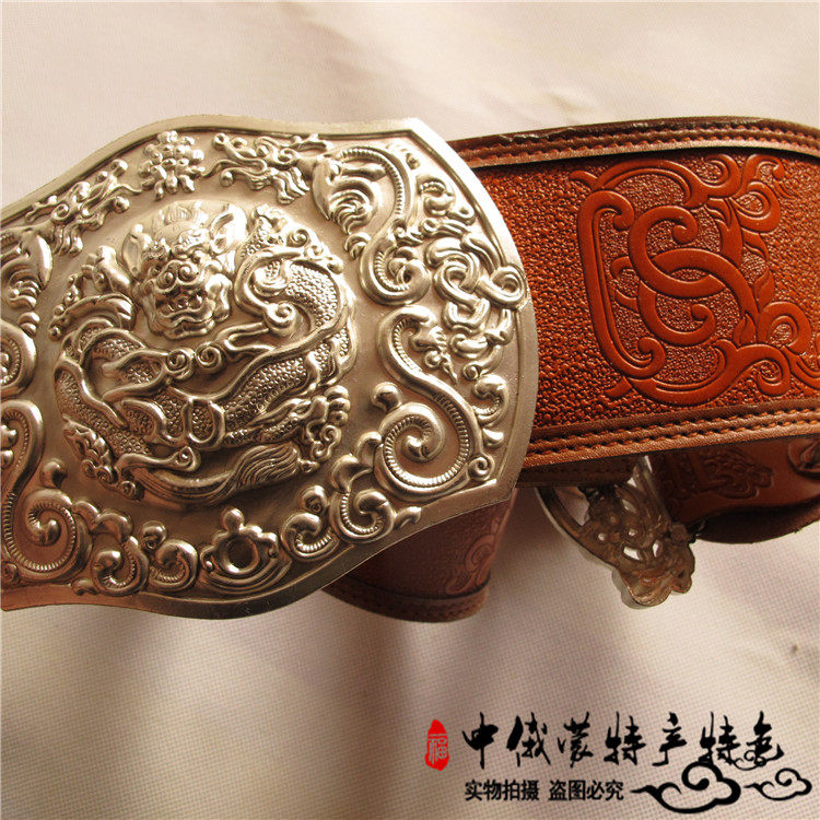 Mongolian characteristic leather belt men's belt white copper buckle belt Mongolian robe accessories ethnic style qipao belt