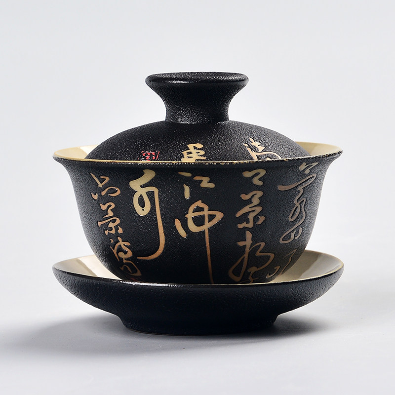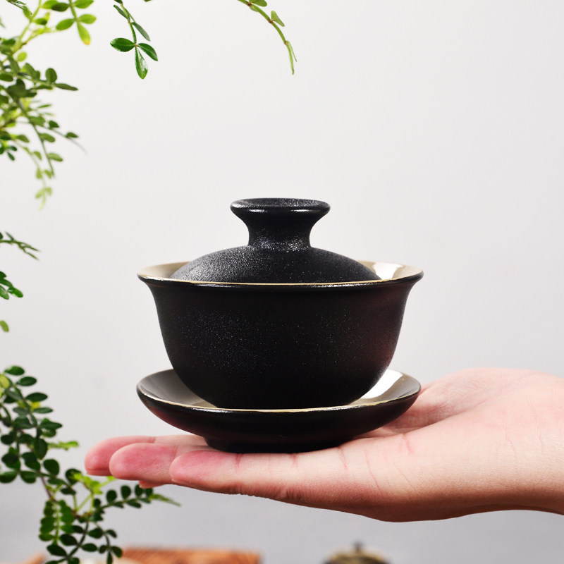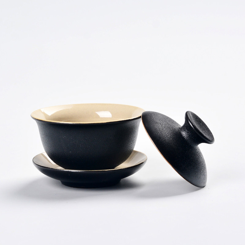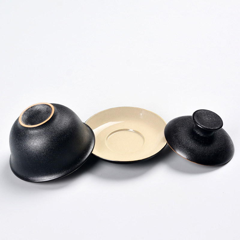 Black Pottery Covered Bowl Tea Cup Ceramic Kung Fu Tea Set
