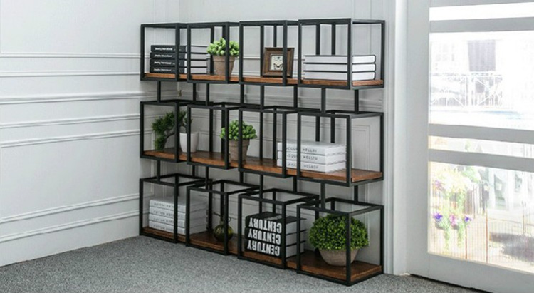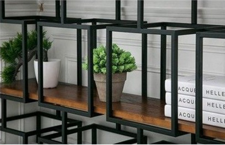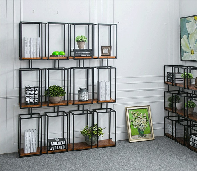 Retro iron bookshelf retro shelf partition solid wood display stand floor-to-ceiling screen partition shelf display shelf decoration