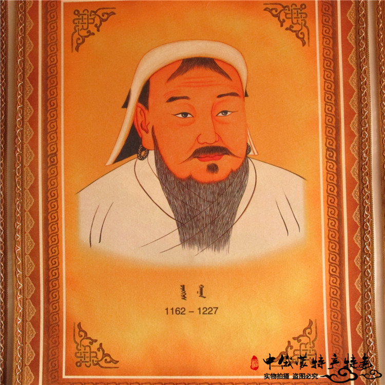 Mongolian felt painting Genghis Khan portrait couplet wool felt painting diy Mongolian craft hanging painting Yurt Restaurant Restaurant