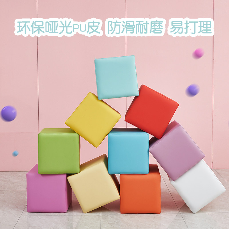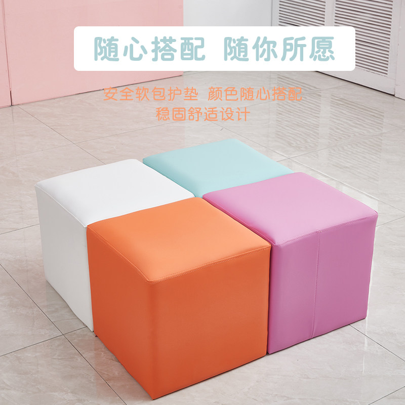 Early education center soft bag stool small stool kindergarten sofa stool color square pier children's stool home leather stool low stool