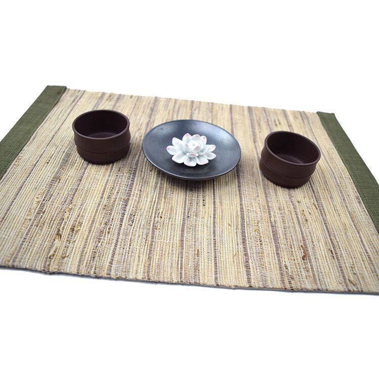 Model room Japanese-style double-layer linen cloth art stitching hemp original rectangular household handmade placemat cotton and linen bowl mat