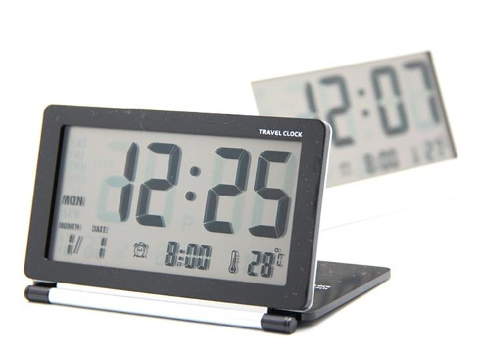 Minimalism Ultra Slim Clamshell Travel Clock LCD Electronic Alarm Thermometer Passbook Fold Silent Fashion Portable