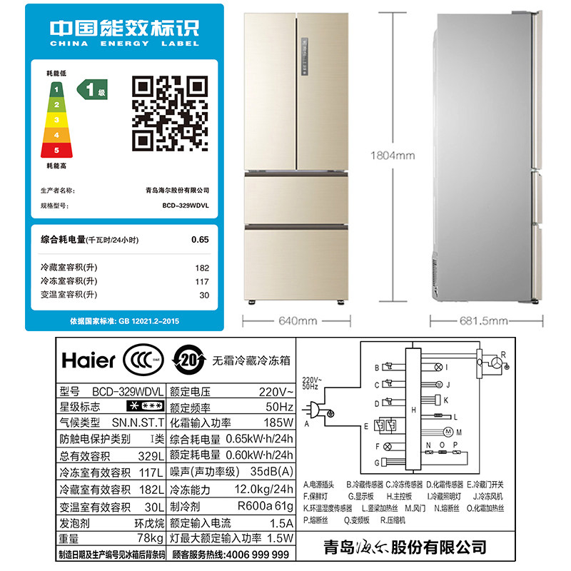 Haier 329L ultra-thin style multi-door four doors double frequency conversion air-cooled frost-free and net taste household intelligent refrigerator