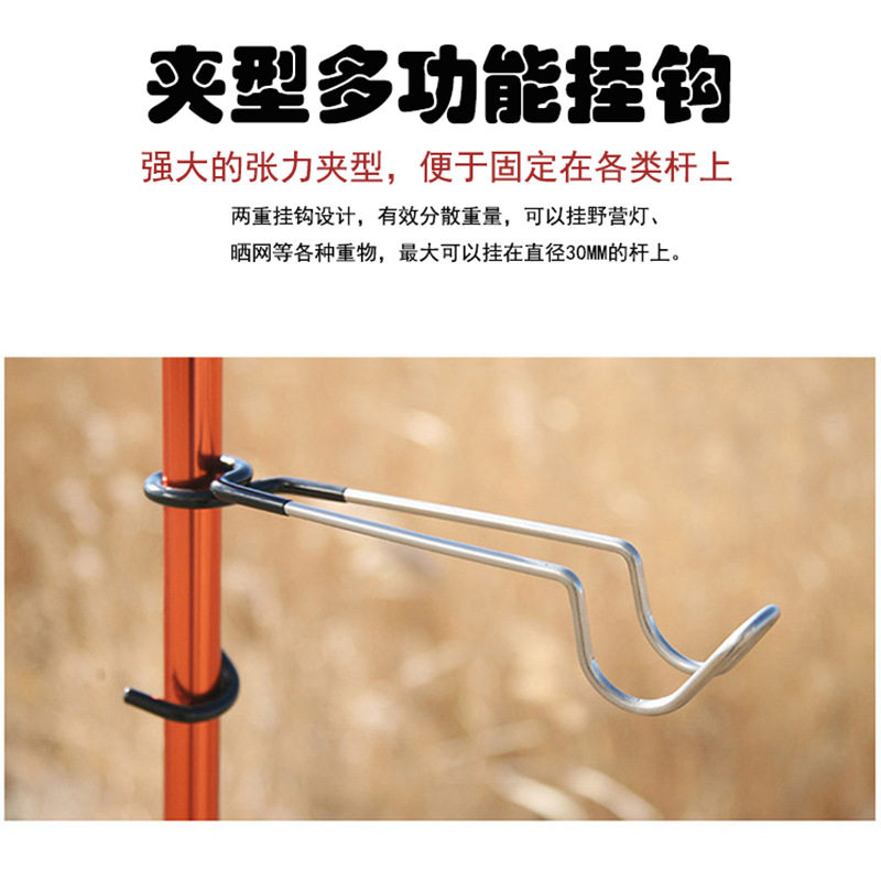 New 304 stainless steel clip type hanging rack multifunction hook camping light hook can hang clothes hanging bag hanging sunscreen
