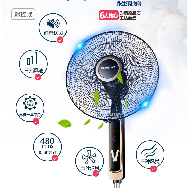 Yongsheng Floor Fan Home Electric Fan Student Dormitory Fan Rotary Fan Vertical Fan Soundtrack Dining Hall Big Fan