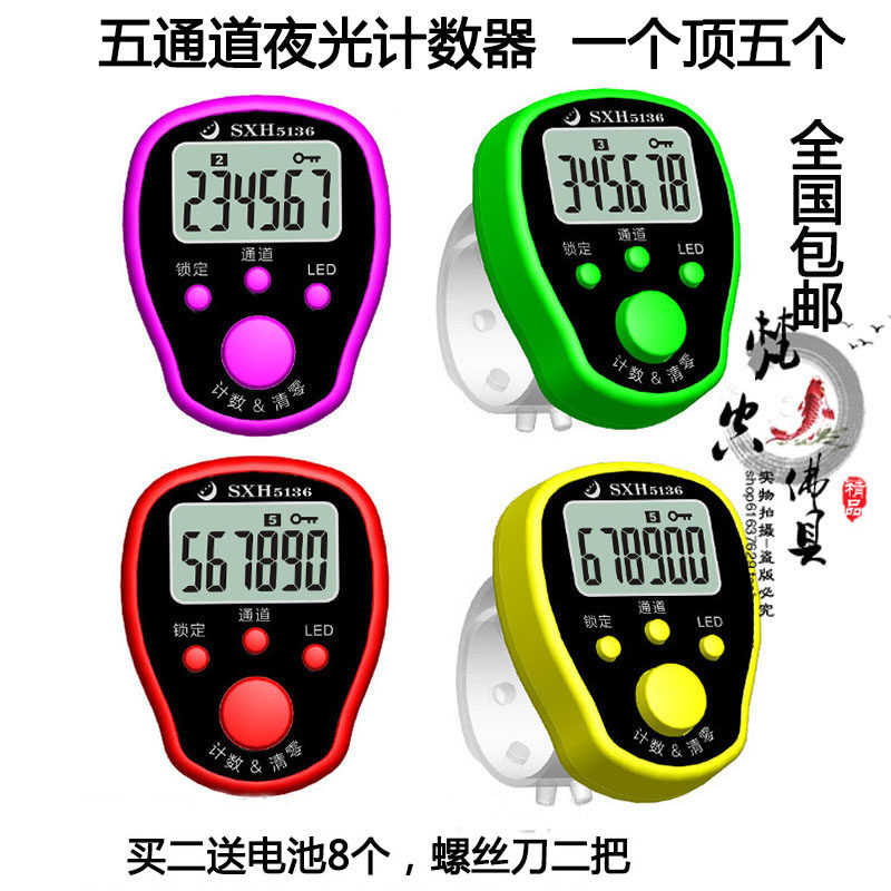 The new luminous five-channel chanting counter 6-digit ring type chanting multi-function pointer lock function