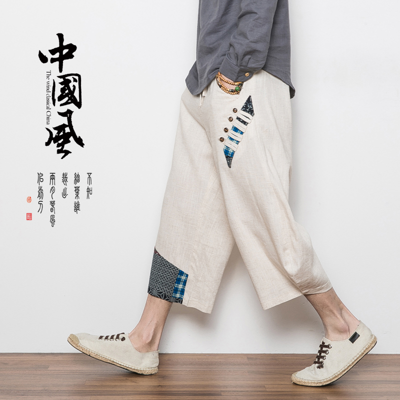 National Wind Men's Clothing Fall Slim Fit Linen Pants Loose 80% Pants Wide-legged Pants Men's Big Code Chinese Casual Pants-Taobao