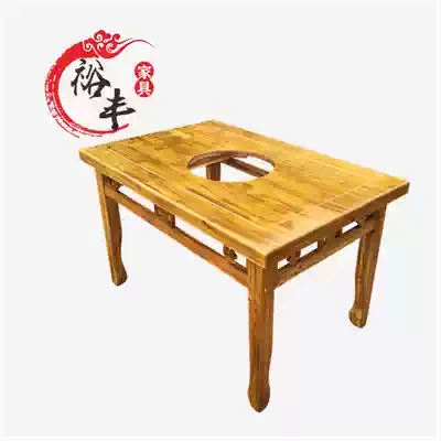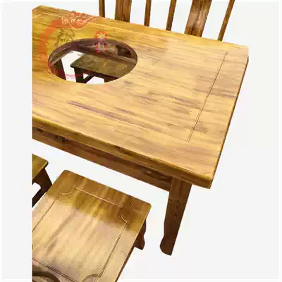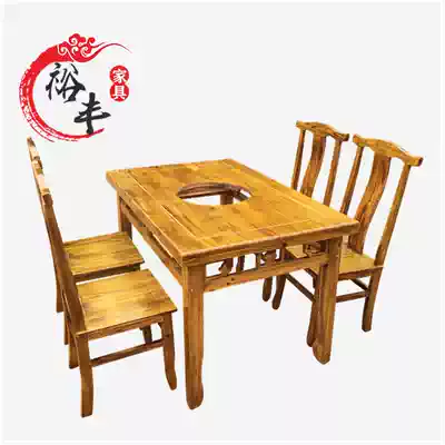 Solid wood hot pot table and chair Charcoal-burning marble wood hot pot table and chair Induction cooker liquefied gas gas stove hot pot table long table