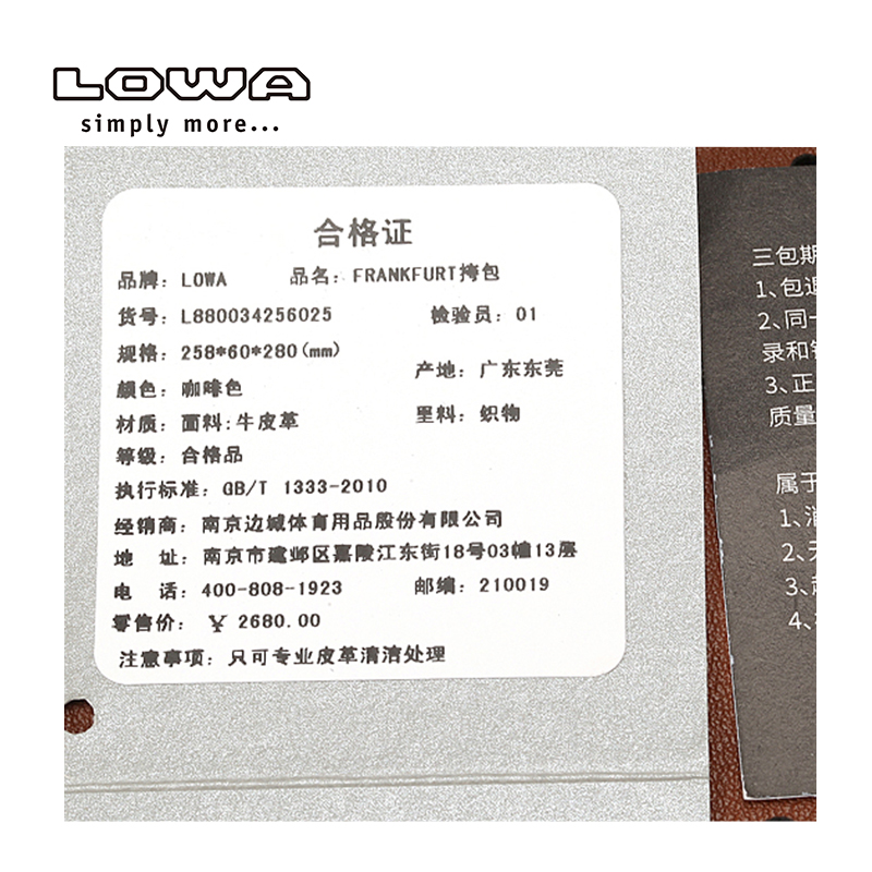 LOWA FRANFURT Cow Leather Satchel Satchel single shoulder bag L880034 025