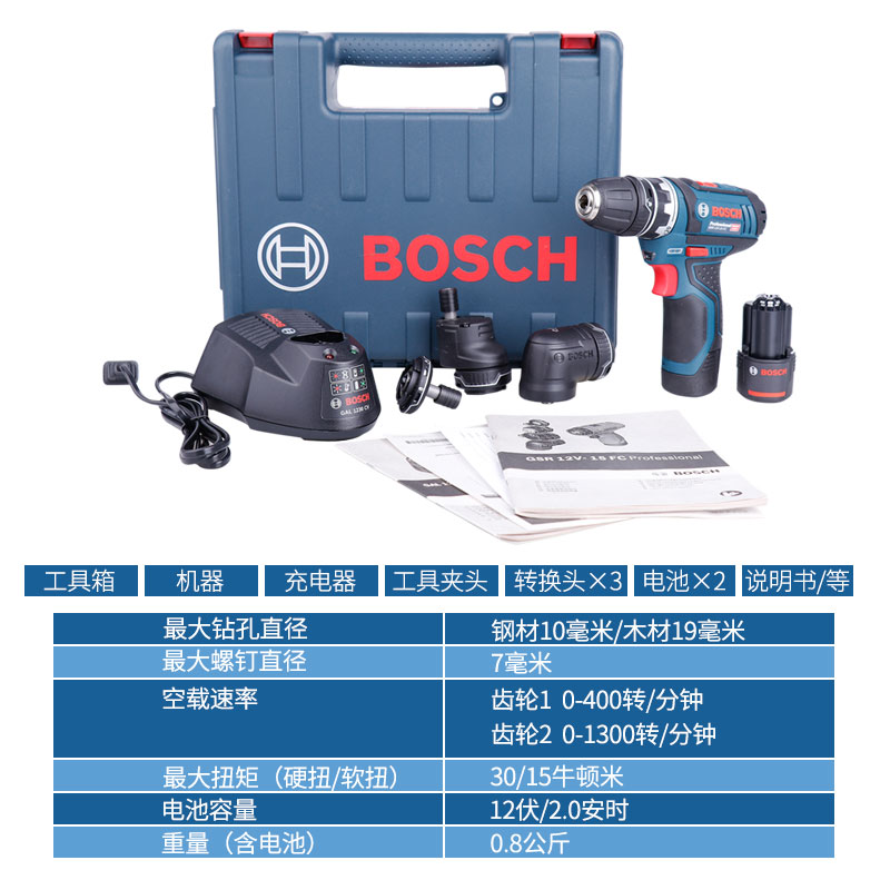Bosch electric drill 12 Lithium GSR12V-15FC household rechargeable electric drill electric screwdriver tool set