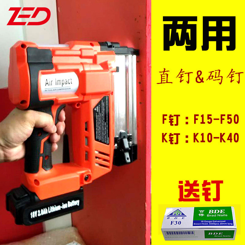 Charging lithium-ion nail steel nail pin pneumatic wireless woodworking decoration double-use nail-nail steel nail nail