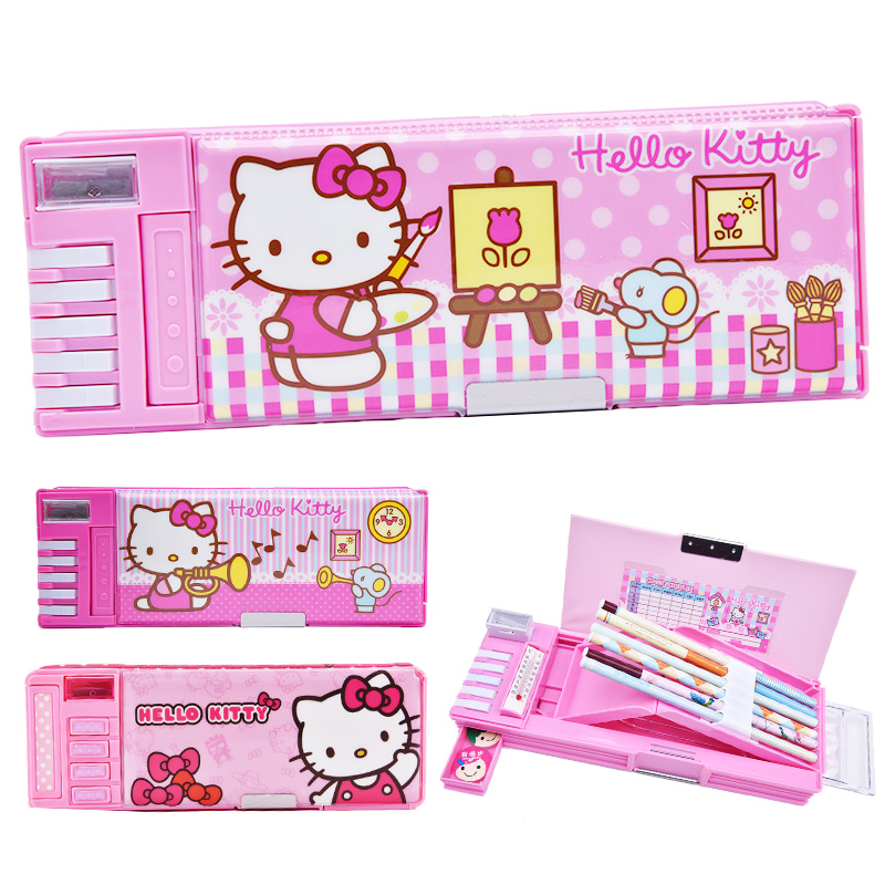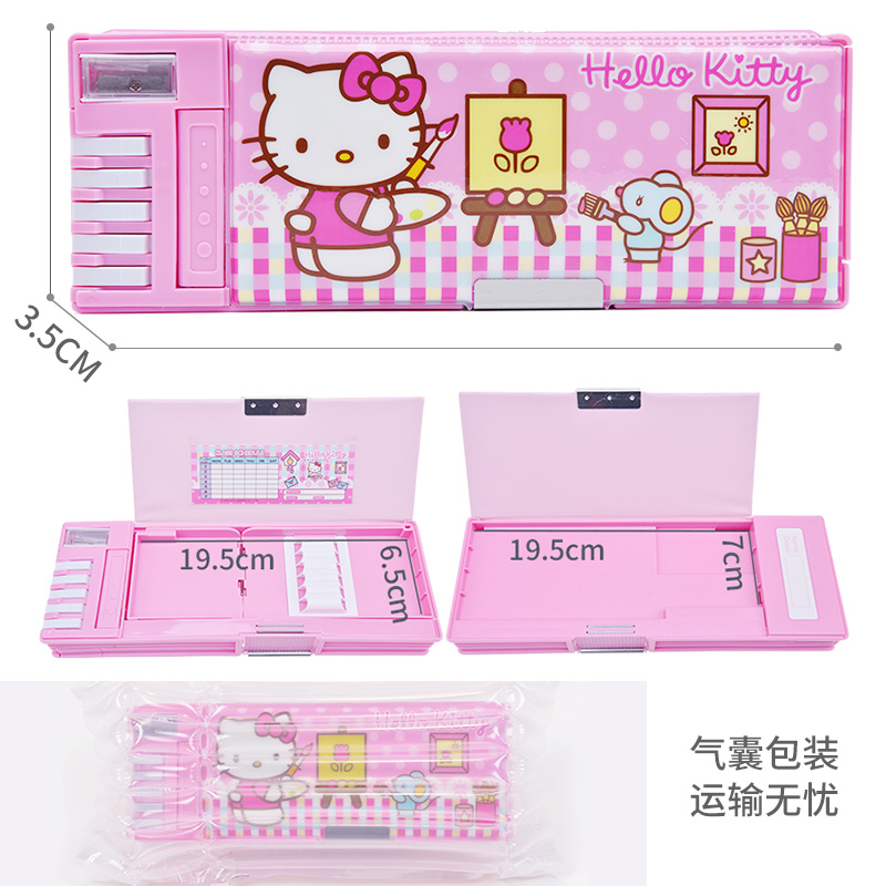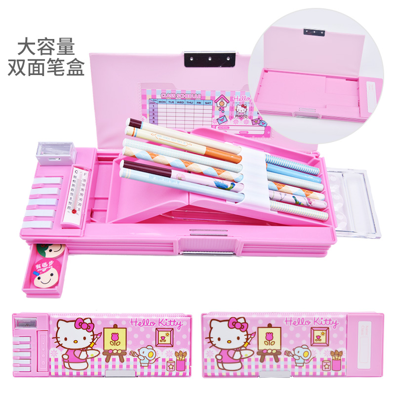 Pencil box for primary school girls girls Hello Kitty children cartoon cute double-sided multi-functional pencil box for girls