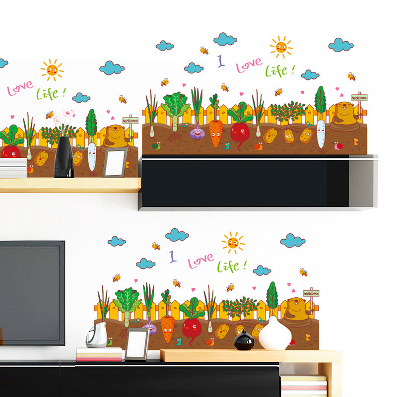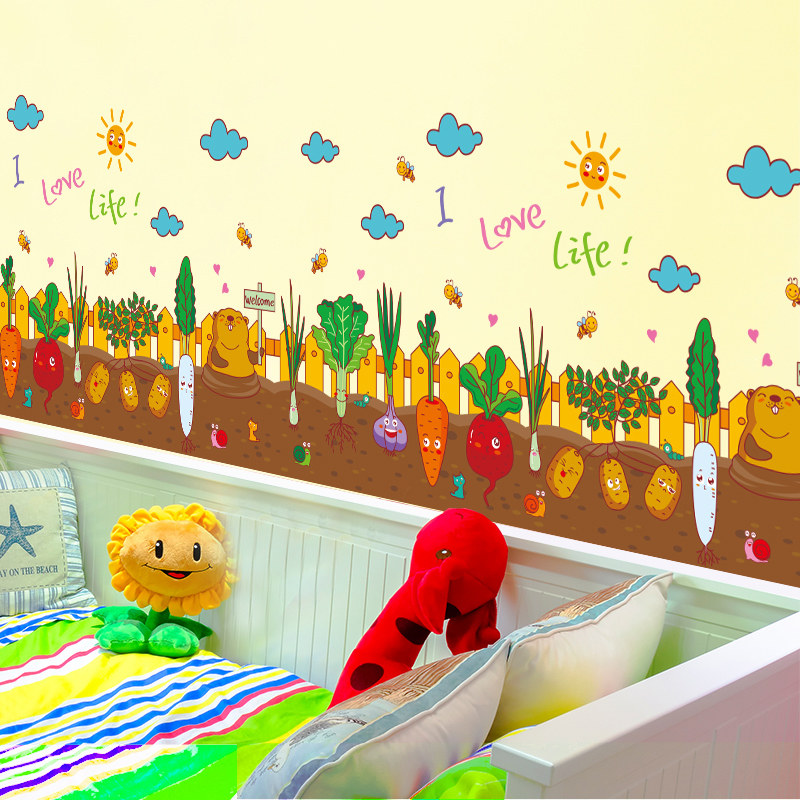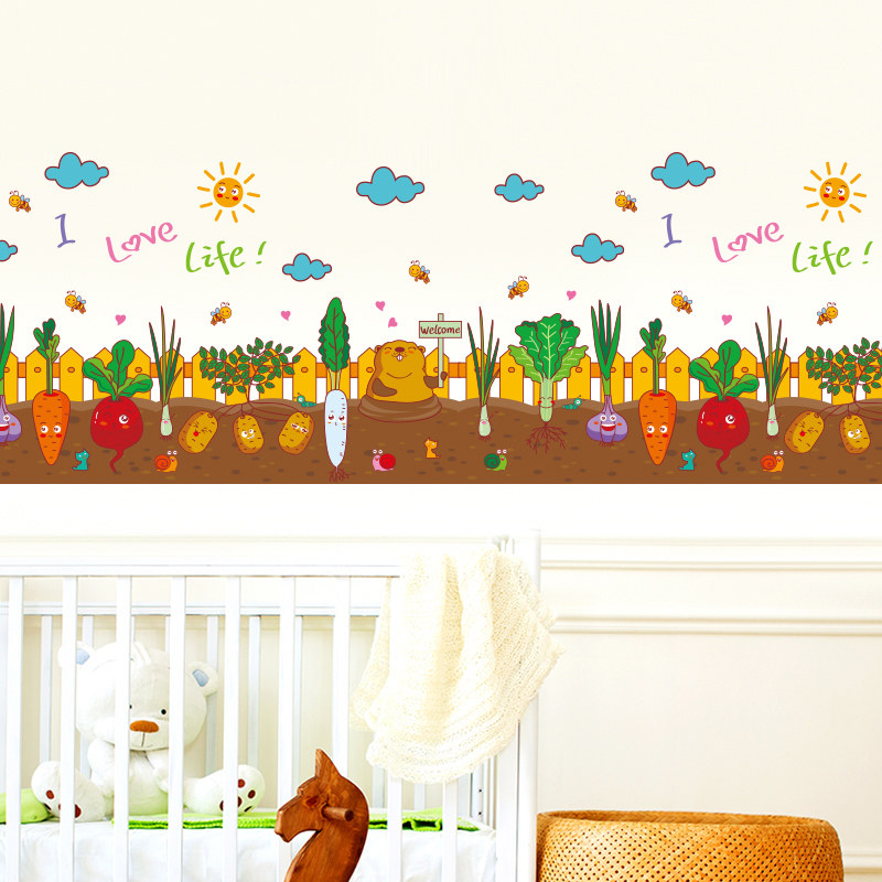 Cartoon creative vegetable garden waist line sticker Kindergarten children's room wall decoration wall sticker art skirting board self-adhesive