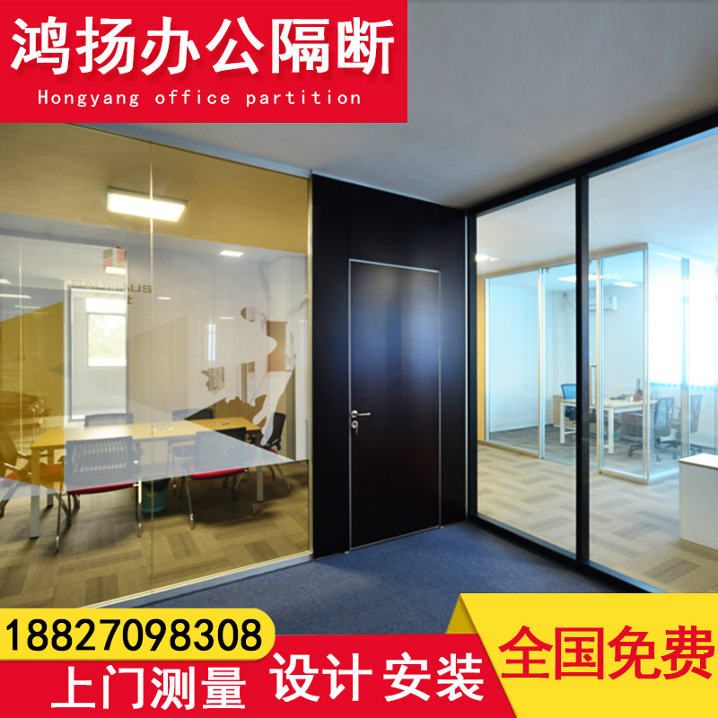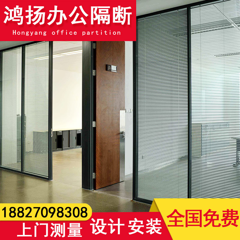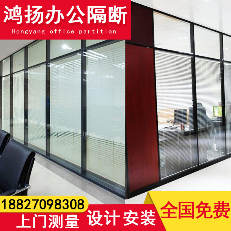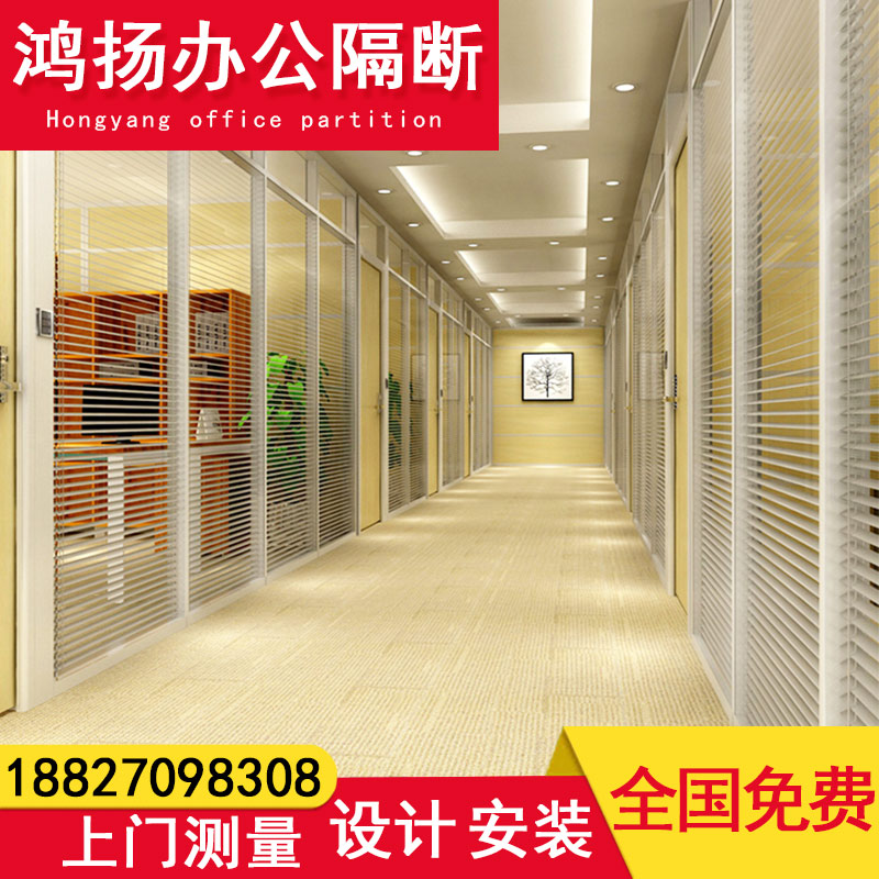 Office single and double glass built-in louver glass partition wall 80 aluminum alloy tempered glass corner high partition wall