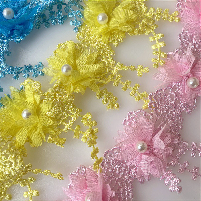 Three-dimensional chiffon flower water-soluble lace DIY clothing accessories dance clothing lace lace decoration skirt pink