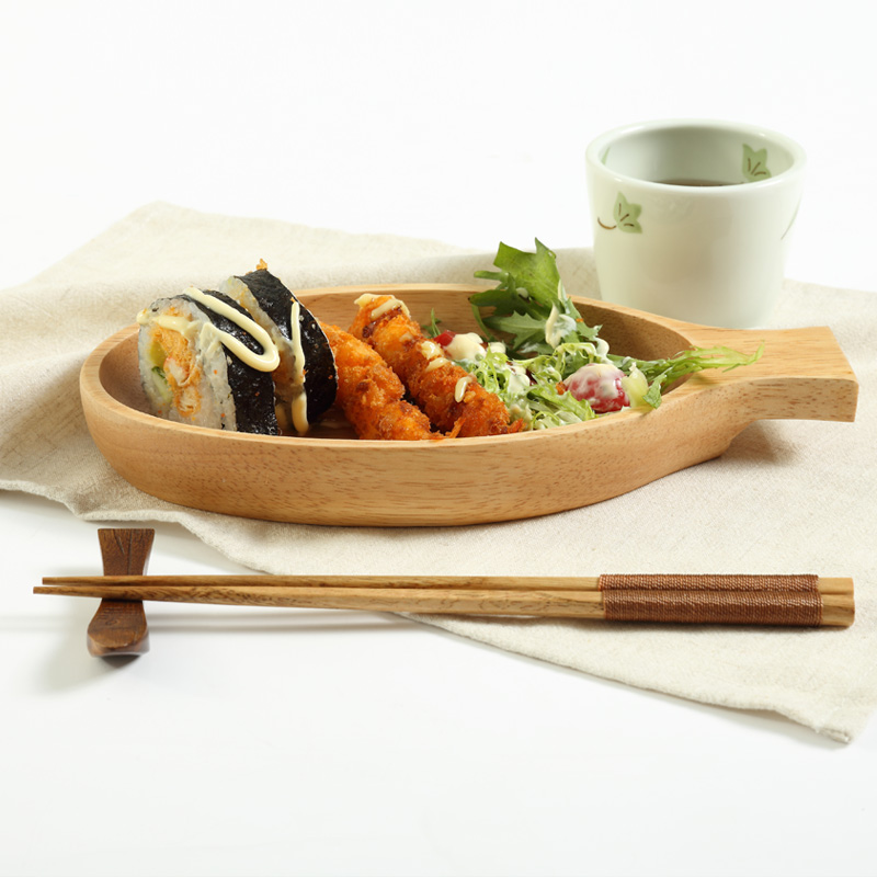 Day Style Creative Fish Type Disc Solid Wood Plate Thick Solid Durable Field Garden Wind Cute Vegetable plate pure color log dinner plate