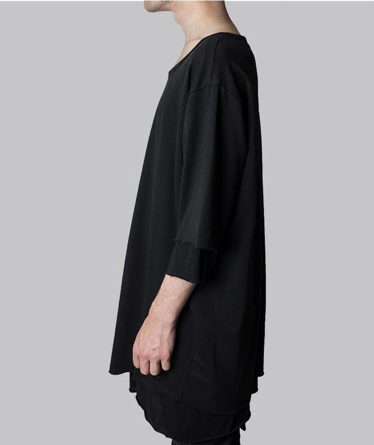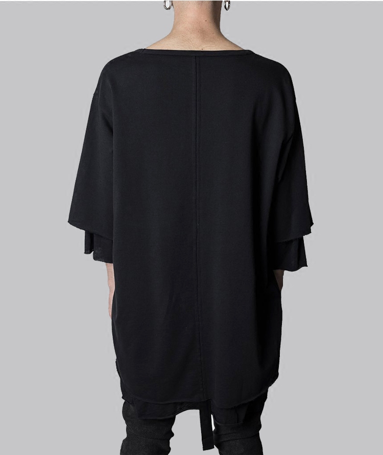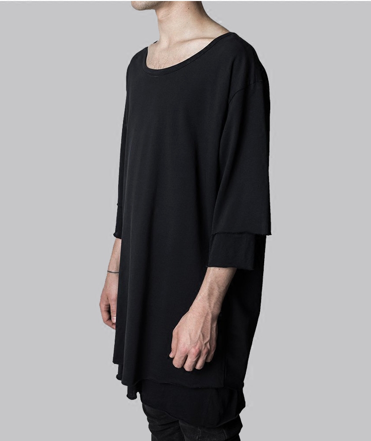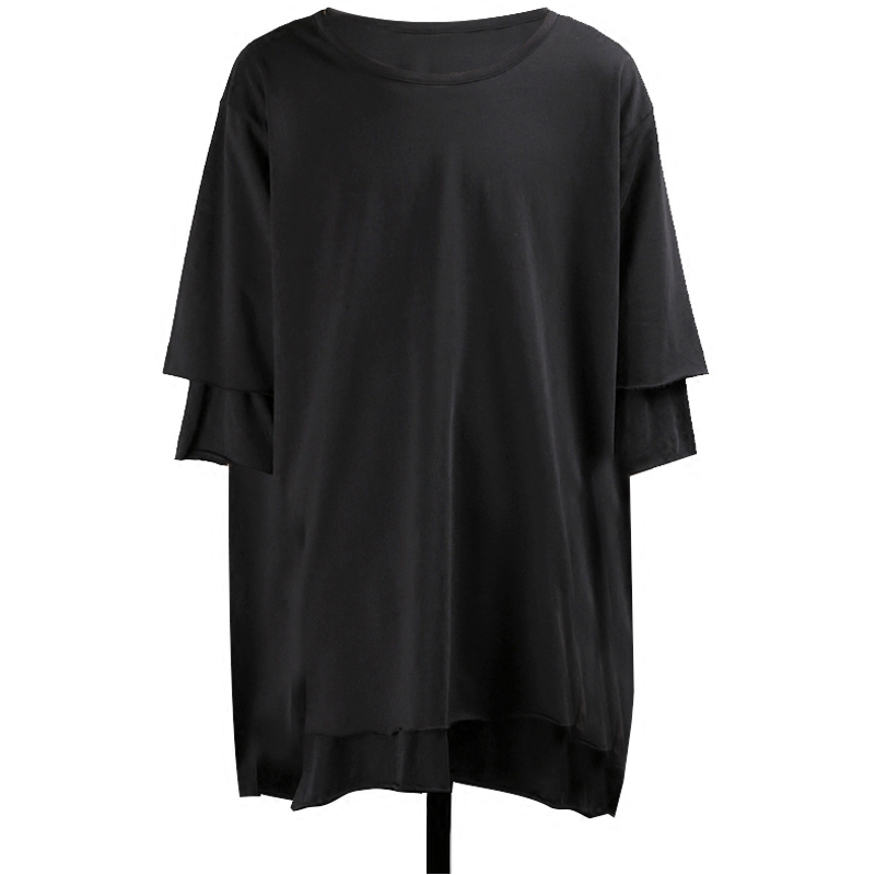 GAOSTUDIOS double-layered wool edge T-shirt loose 50% sleeves male and female small crowdStreet design base hit bottom