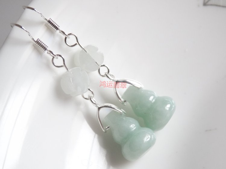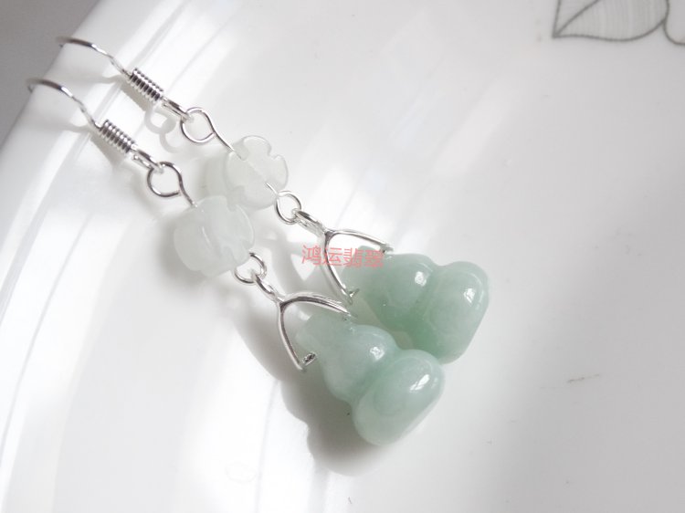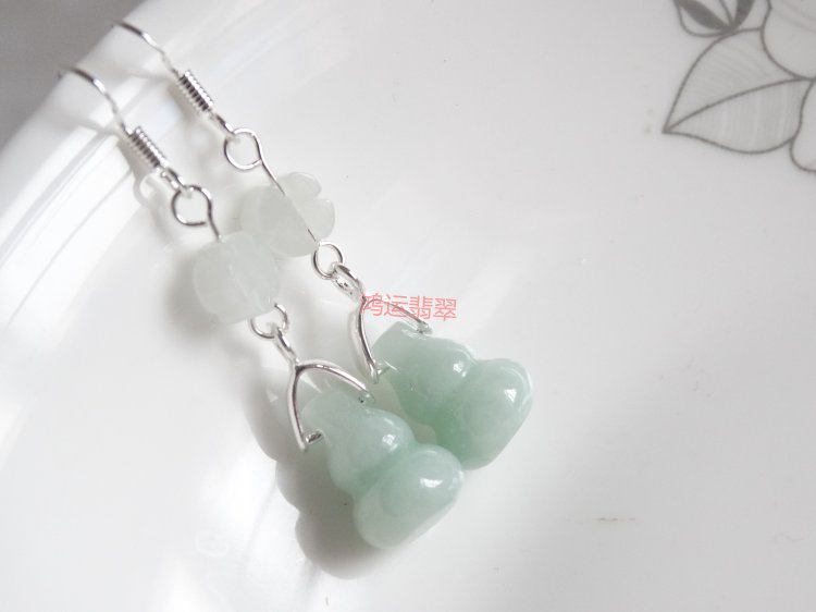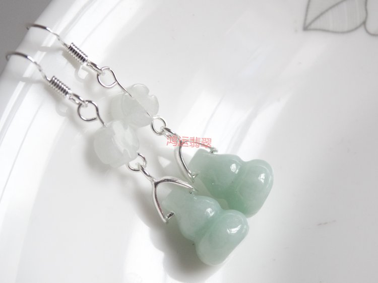 Natural Burmese Emerald A - Fluzu Float jade ear crash S990 pure silver earrings appear to repair jade earrings