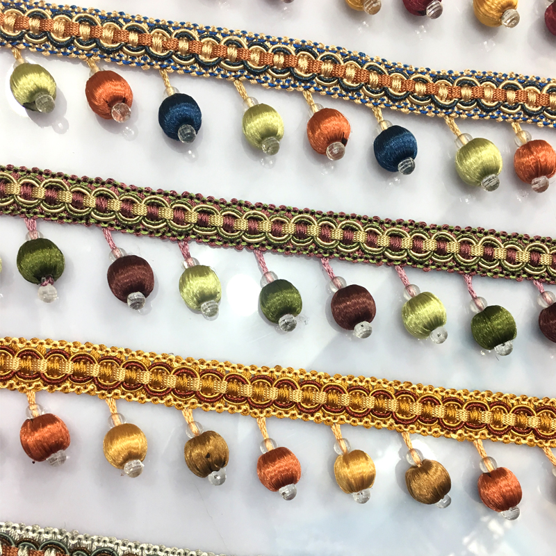 Tianhe lace new silk wooden bead lace curtain beads multi-color screen stitching sofa lace accessories
