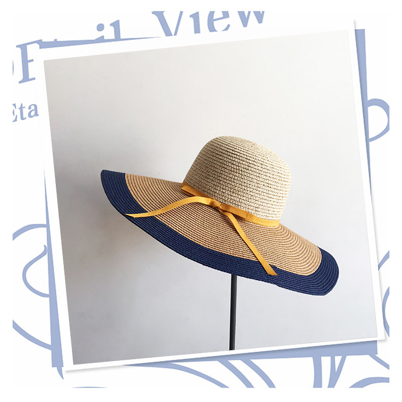 Midsummer Night's new 13CM color-blocking large eaves bow sunshade casual travel anti-UV holiday straw hat tide