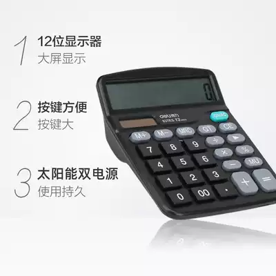 Deli Deli Solar Calculator 12-bit dual-power computer Big Button portable Financial accounting