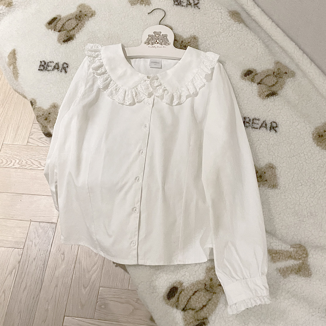 Sweet girl cute lace doll collar wild basic section with white cotton shirt long sleeve H