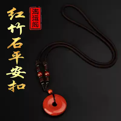 Red bamboo stone peace buckle stele pendant Red silkworm stone shadow stone jewelry Men and women mascot birthday holiday gift