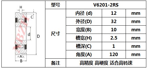 Outer ring with V-groove bearing Spring machine pulley straightener Guide wheel bearing V6201 inner 12*outer 32*10mm