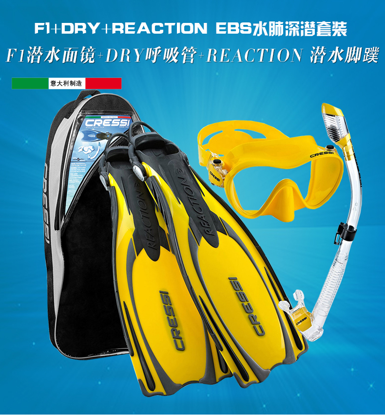Italy CRESSI f1 mirror Diver all dry straw Deep subbed snorkel Snorkeling Samsung suite