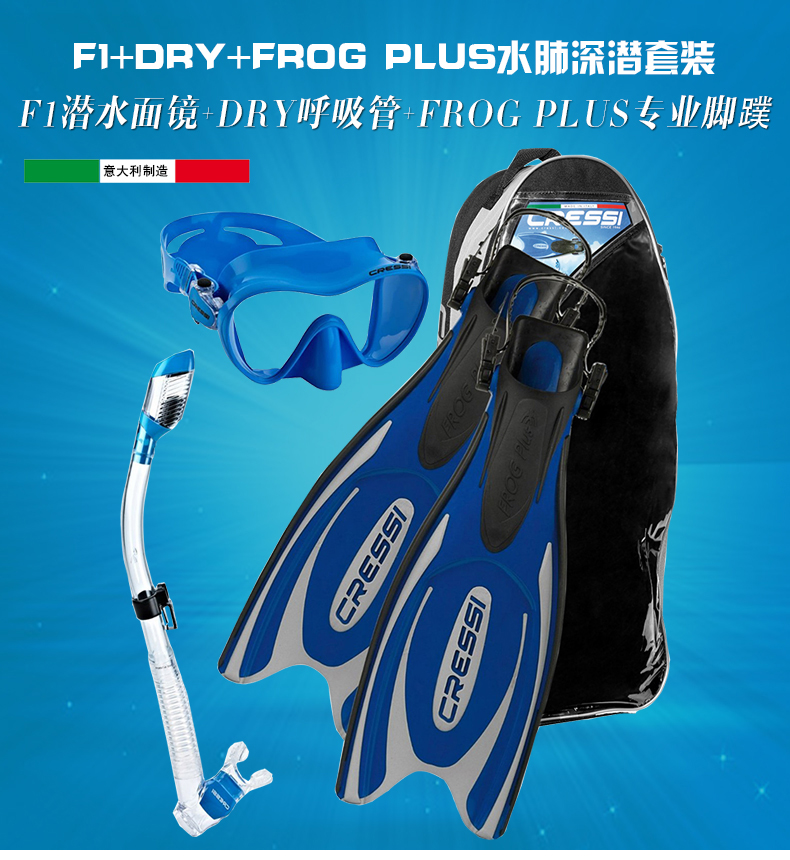 Italian CRESSI F1 Mirror Professional Water Lung Deep Diving Foot Webfin Frog Shoes Diving Mirror Suit Snorkeling Trippel