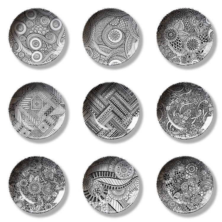Black and white line decoration pattern hangs plate simple wall disk disc disc picture disk hanging wall disk