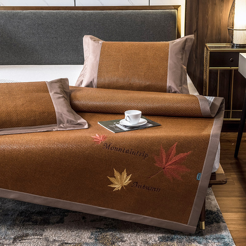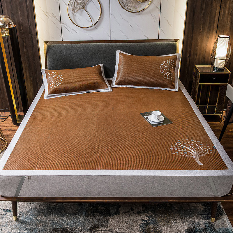 2022 Sisi Mei Liang mat thickened embroidered rattan mat three-piece set 1 8m bed folding air conditioner 1 5m ice silk mat