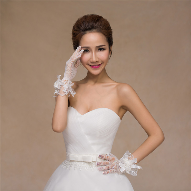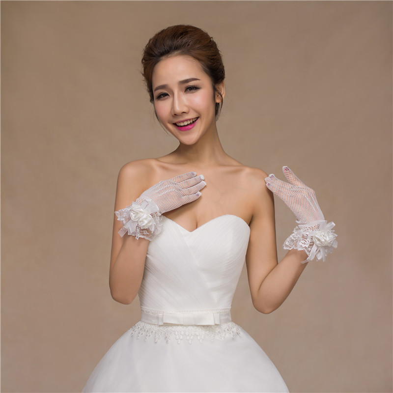 2017 new bridal wedding gloves Short Han style five finger lace white wedding dresses Flowers Accessories