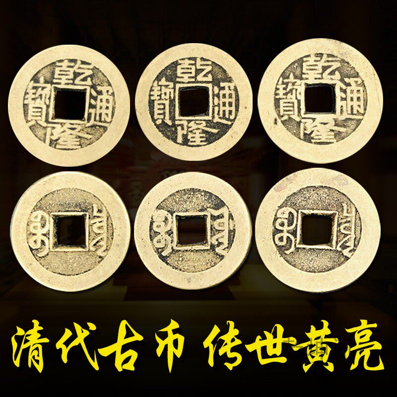 Five emperors Qianlong Tongbao portable Qing Dynasty town gate house opposite door pendant six emperors money ancient coins pure copper money genuine