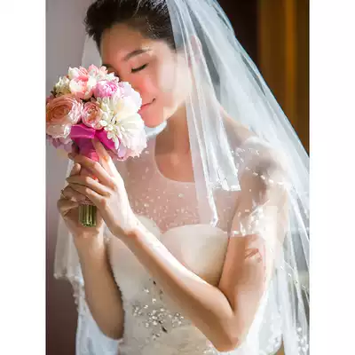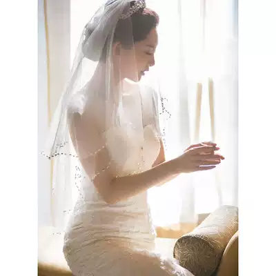 Korean veil 2020 New Bride wedding veil short double nail beads beautiful wedding accessories